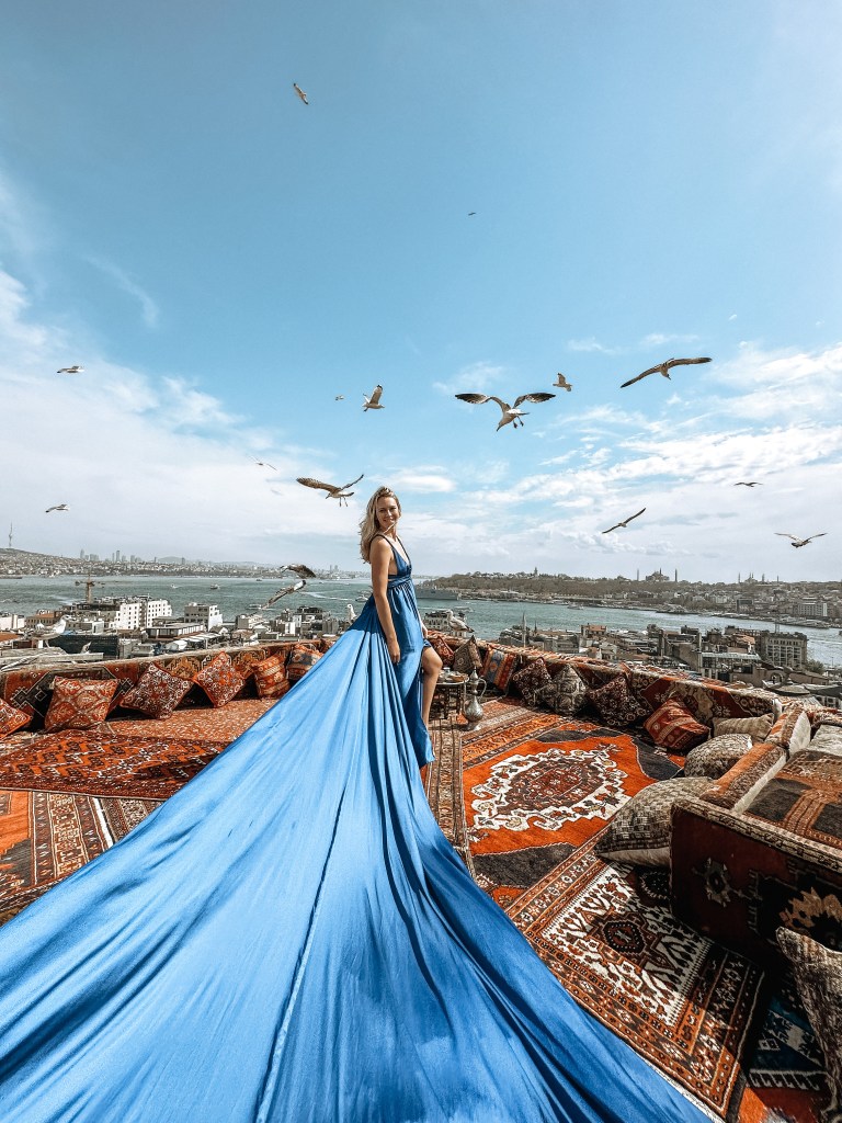 To get one of these photos taken I walked down one of the streets right beside Galata Tower and found a man holding an iPad showing these type of pictures and others going across the screen. We talked to him and he lead me to the roof where they take your pictures and video.